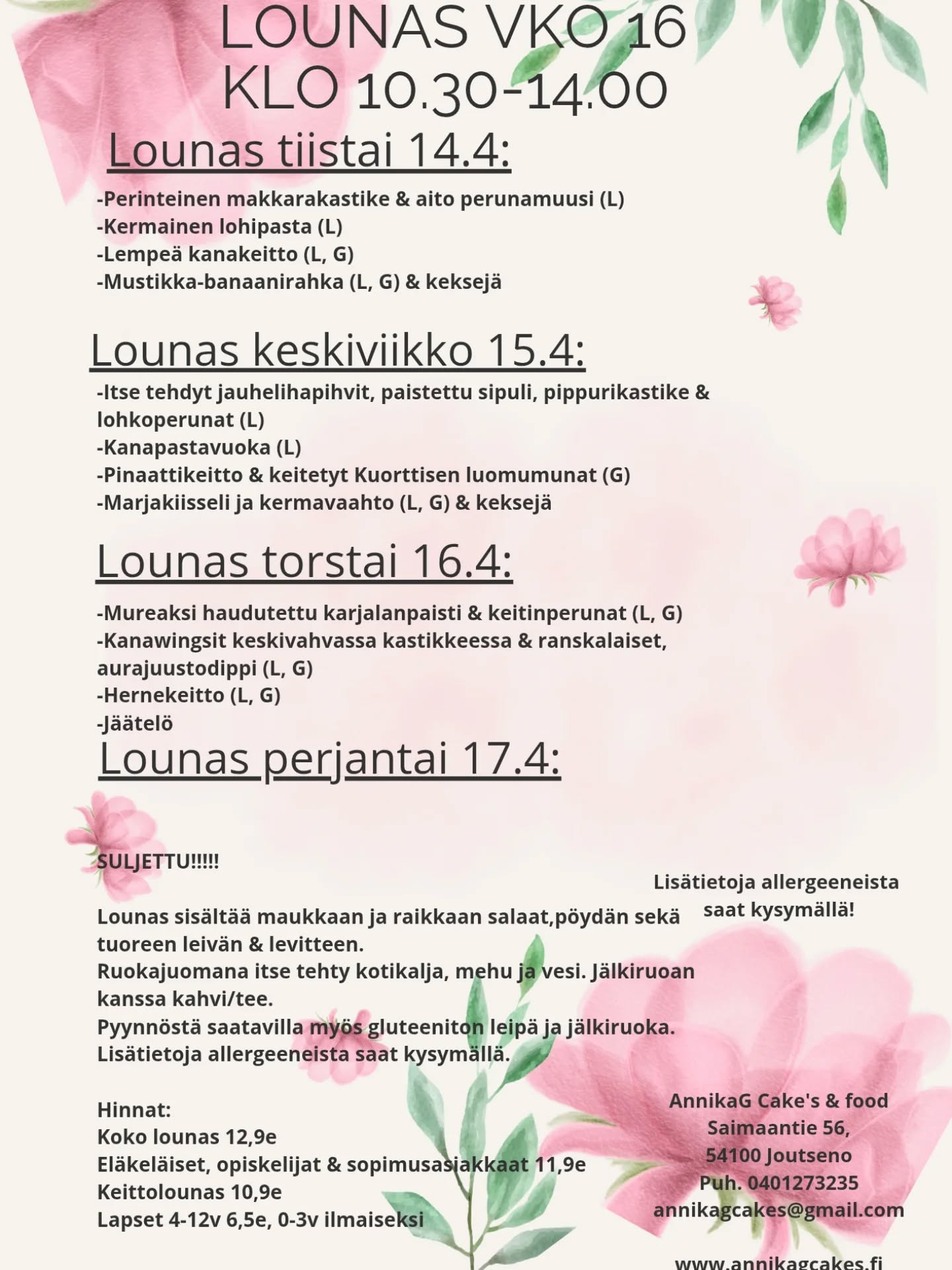 Lounas tiistaista perjantaihin kello 10:30-13:30